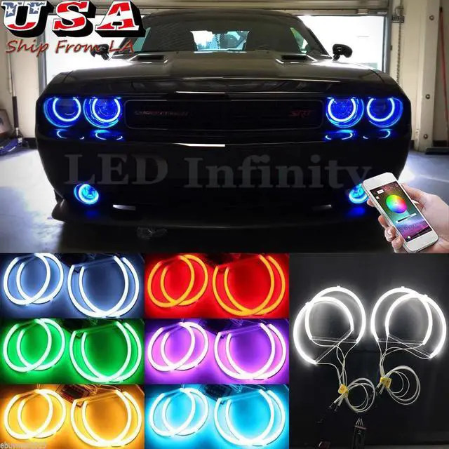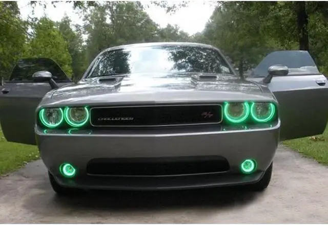 Product description This listing is for one set RGB Halo Ring For Dodge challenger 2008-2014 car headlight. Give your car Modern Look, More Fashion, More Beautiful, More Traffic Safty! Resistant to tremors, vibrations and frequent on / off switching as well as extreme temperature variations. Error free and no radio interference. Durable and non-fading brilliant beams Instantly and immediately light on. Ultra bright light, Low power consumption. Brand New Cotton RGB LED Rings, with Milk White Cover. Come with Wift control for color change, flash/strobe/fade/smooth pattern change and bright/dim change.