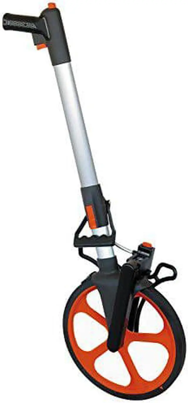 DuraWheel DW-PRO 12.5" Diameter Distance Measuring Wheel. With its Oval-Shaped Tube, it proves to be a strong and lasting tool. The Heavy-Duty Commercial-Grade DW-PRO Measuring Wheel is designed and built for the professional user. You can feel the difference as soon as you pick it up. When you click the handle to secure it into the upright position, its a very secure and quality click. You can feel the quality and strength with the oval shaped tube design (an oval is stronger than a circular type tube). A hefty and ergonomically designed pistol grip with convenient brake and counter-clear controls at your finger tips.