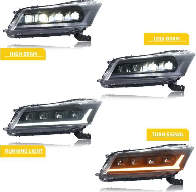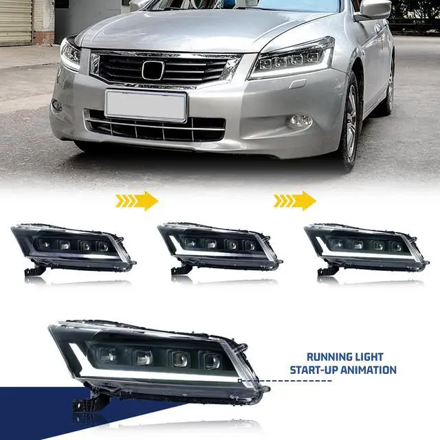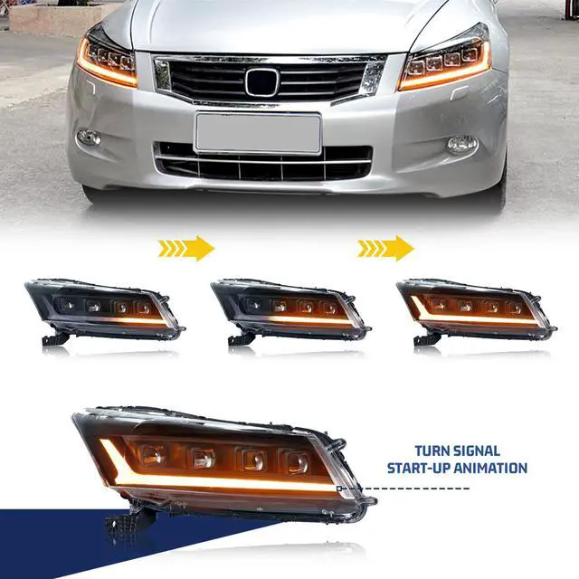 inginuity time LED Headlights for Honda Accord 2008 2009 2010 2011 2012 Sedan 8th GEN Strat-up Animation Sequential Signal High/Low Beam Projector Front Lamps Assembly