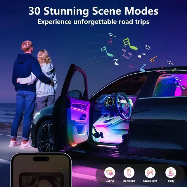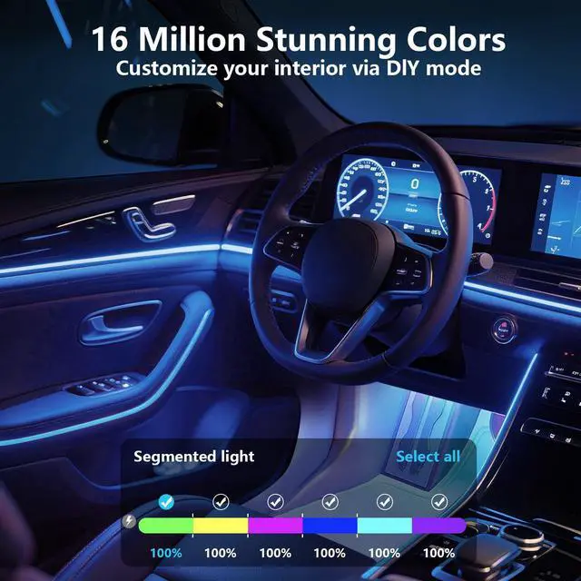 Enhance your vehicles ambiance with these Smart Interior Car LED Strip Lights, designed to offer a customizable and immersive lighting experience. Featuring advanced RGB+IC technology, these lights provide access to 16 million colors and 256 dynamic lighting effects, allowing you to tailor the atmosphere to your preference. The integrated rainbow effect and 8 dynamic music modes synchronize lighting with your favorite tunes, creating a vibrant, interactive environment. Easily controlled via a dedicated app, these LED strip lights offer seamless adjustments for color, brightness, and mode selection. Compatible with 5V systems, installation is straightforward and suitable for most vehicle interiors. Enjoy a modern upgrade that combines style, functionality, and convenience for any car owner seeking a personalized driving experience.