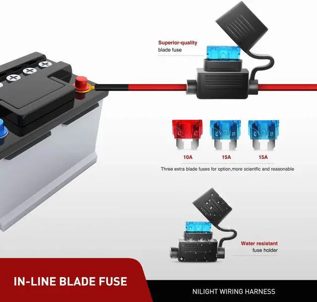 The inline blade fuse with water resistant fuse holder act as the first Line of defense against over current and short circuit which is more scientific and safer. Four wire connectors are included for safer connection.