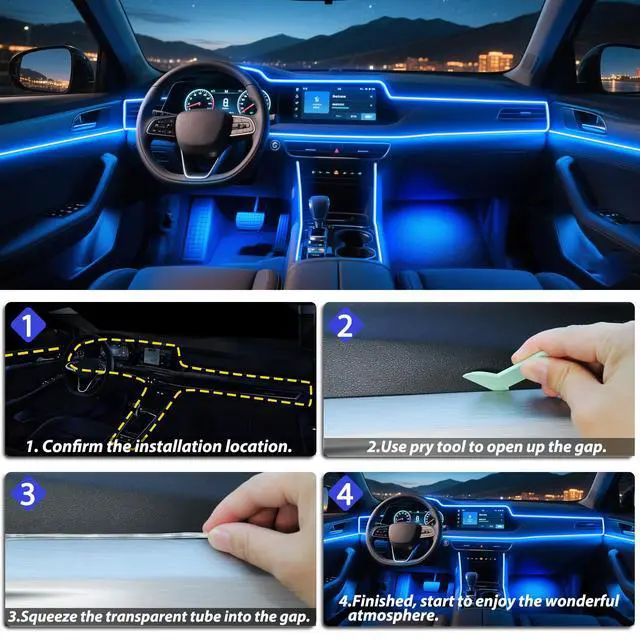 The car interior lights are pre-installed with optical fibers, which can be directly inserted into the gap of the center console, and the installation and operation is super easy.