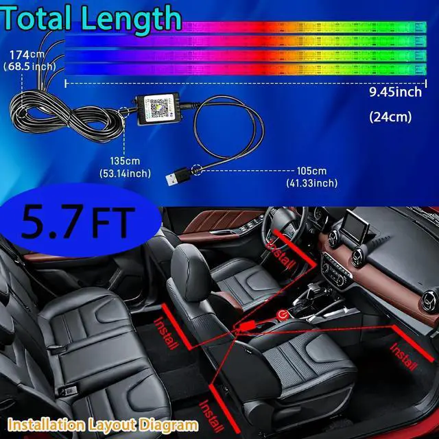 - You can use the remote control and APP at the same time to control RGB car interior light strips