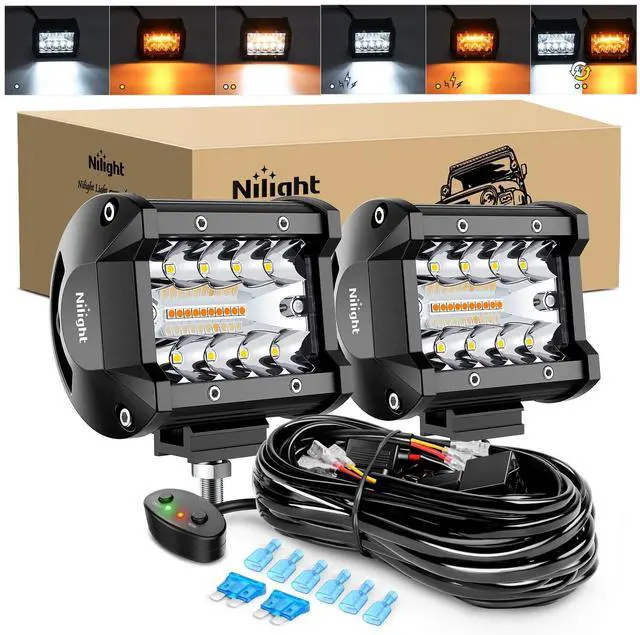 Nilight 2PCS 4Inch 60W LED Pods Spot Flood Amber White Light Bar