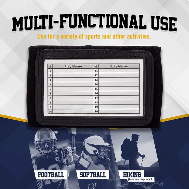 PLAY LIKE A PRO - Playbook Wristbands keep your football, softball, or other sports plays (or maps) right on your wrist for easy viewing. Play sheets included!