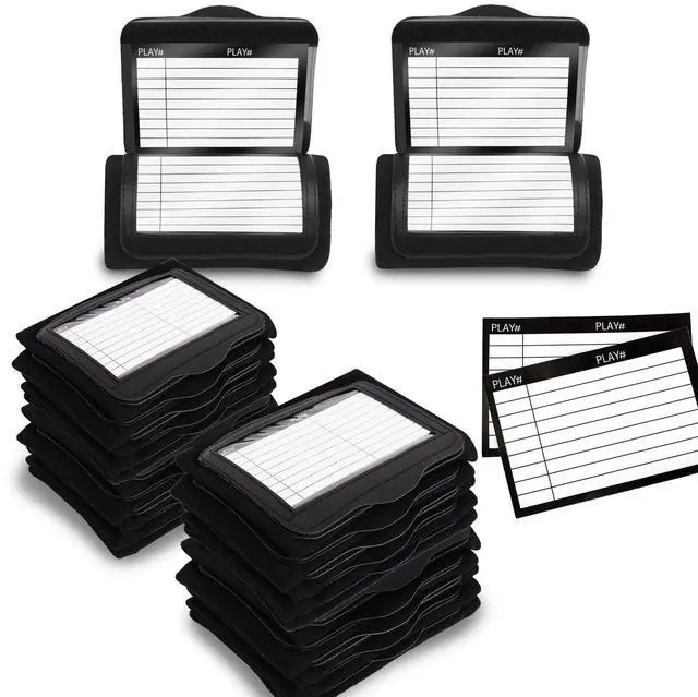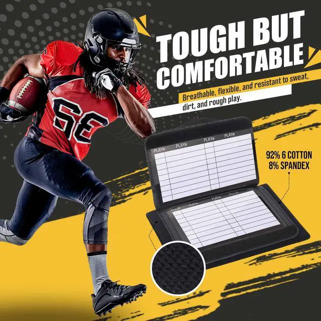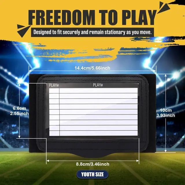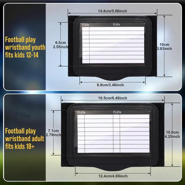 PLAY LIKE A PRO:Football Play Wristbands keep your football, softball, or other sports plays (or maps) right on your wrist for easy viewing. Includes 3 compartments for plenty of plays or maps. Play sheets included