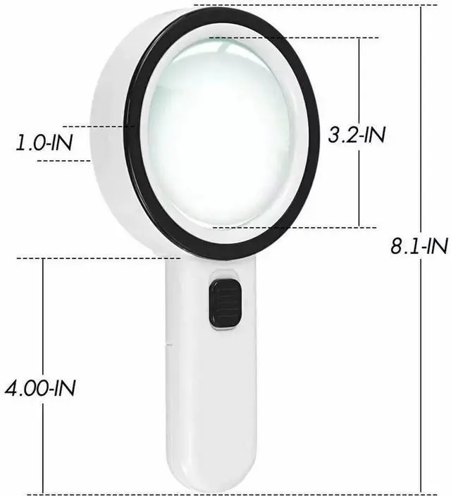 Illuminate While You Magnify12 LED lights provide the best illumination for reading and working at night or in darkness( Need 2 AA batteries, battery not included)