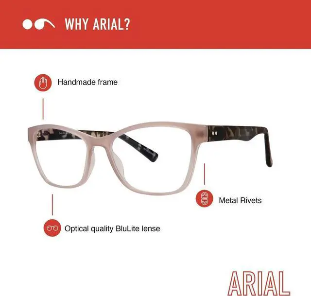MAKE A STATEMENT: These are more than just computer reading glasses; they are an extension of your exquisite taste. With a chilling touch of frosted acetate, the Arial ushers intrigue into the world of reading glasses. Youll love the smoother, almost softer aesthetic that effortlessly marries comfort and style. Looking for blue light blocking glasses without near-vision correction? Arials are available in a 0.0 magnification. Choose your color, step out, and brace for the compliments.