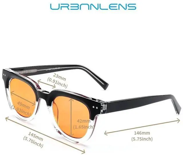 UrbanLens Blue Light Blocking Reading Glasses Amber Blue Blocker Lens - For Better Sleep, Reduce Eye Strain for Women + Men (Black/Clear, 1.75, x)