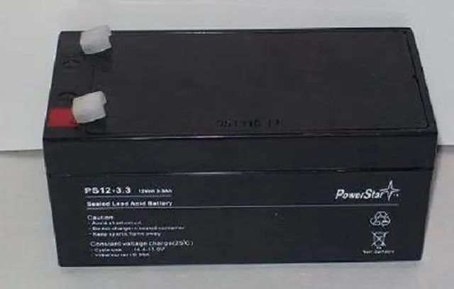 PowerStar® 12V 3.3AH SLA/AGM BATTERY - BRAND NEW Dimensions(inches) Length: 5.28 , Width: 2.64 , Height: 2.4 Distance between terminals 1.6 inches Features: Maintenance-free operation Stable quality and high reliability Compact design Applications: UPS Emergency lighting Fire alarm and security systems Telecommunication systems Backup power for testing and measuring instruments Alarm and security system Electronic apparatus and equipment Communication power supply DC power supply Auto control systems Fits UPS Batteries and More: RBC Battery Cartridges RBC35 APC BACK-UPS ES BE325-FR APC BACK-UPS ES BE350 APC BACK-UPS ES BE350C APC BACK-UPS ES BE350ES APC BACK-UPS ES BE350G APC BACK-UPS ES BE350U APC BACK-UPS ES ES 325 APC RBC35 APC RBC47 APS BackUPS ES BE350U Cyber Power 325SL Cyber Power CPS300SL Cyber Power CPS320SL Cyber Power CPS325SL Conext CNB325