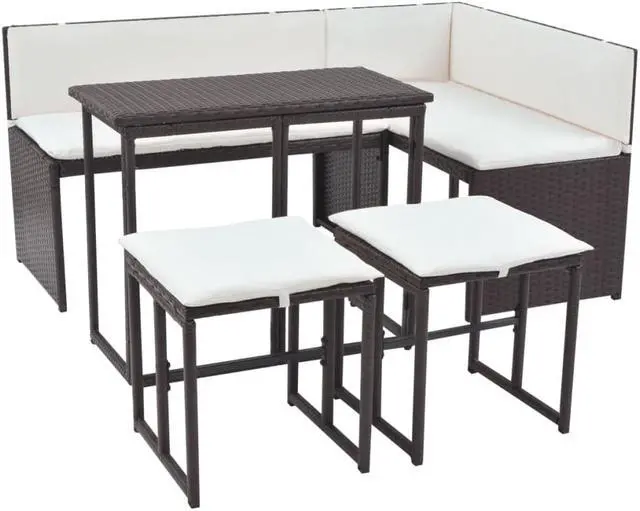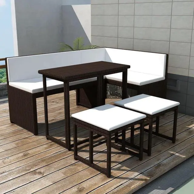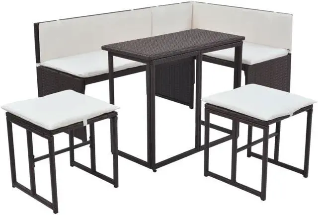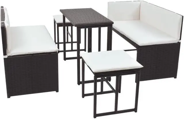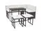 The thick, soft, foam-filled seat and back cushions are highly comfortable and made of high-quality polyester. The covers with zippers can be removed and washed. Delivery includes 1 table, 2 chairs and 4 cushions.