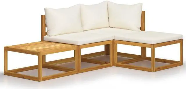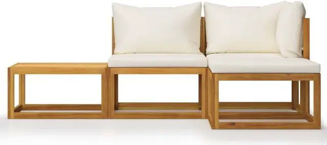Featuring solid acacia wood frame, the sofa set is strong, sturdy and durable; and its oil finish makes the sofa set suitable for outdoor use. The removable seat and back cushions are thickly padded, so as to offer great seating comfort. A coffee table, featuring unique slatted design, is also included. Additionally, standing out with its modular design, all parts can be arranged and customised as you need.