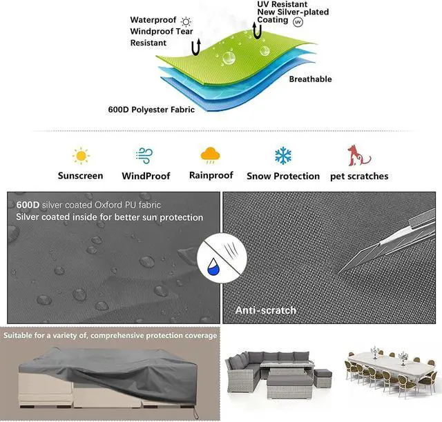 Make your patio furniture last longer and stay strong for years to come with our Patio Furniture Cover Collection. Offering elegant, understated style, these covers feature our Durable polyester fabric with an added UV-stabilized coating and a water-resistant laminated backing, so theyll keep their looks while protecting your furniture season after season.