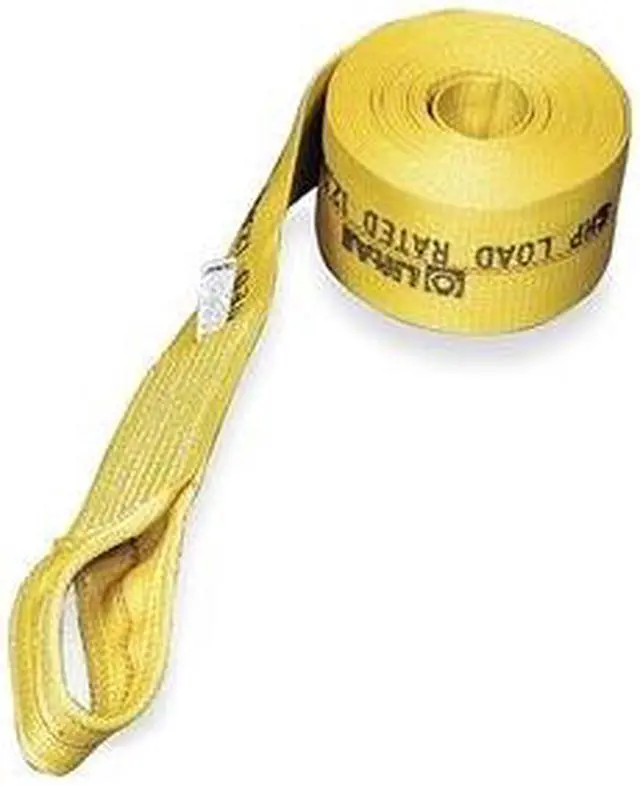 Winch Strap, Working Load Limit 5, 000 lb, Color Yellow, End Type Sewn-Eye, Tensile Strength 15, 000 lb/in, Tie Down Material Polyester, Overall Width 4 in, Reinforcement Properties General Purpose, Fixed End Length 18 in, Overall Length 27 ft, Standards CVSA, FMCSA, US DOT, Adjustment Type Winch, Manufacturers Warranty Length Not Applicable, End Material Polyester, Product Type Winch Strap. This item has been restricted from sale in the following state (s): []