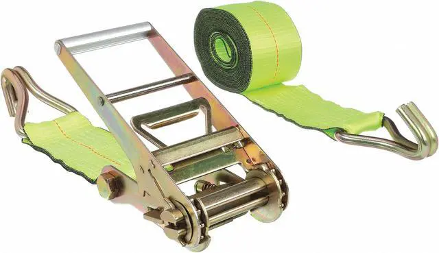 Tie Down Strap, Working Load Limit 5, 000 lb, Color High-Visibility Green, End Type Wire-Hook, Tensile Strength 15, 000 lb/in, Tie Down Material Polyester, Overall Width 4 in, Reinforcement Properties Cut-Resistant Edges, Fixed End Length 18 in, Overall Length 27 ft, Standards CVSA, FMCSA, US DOT, Adjustment Type Ratchet, Manufacturers Warranty Length Not Applicable, End Material Steel, Product Type Tie Down Strap. This item has been restricted from sale in the following state (s): []