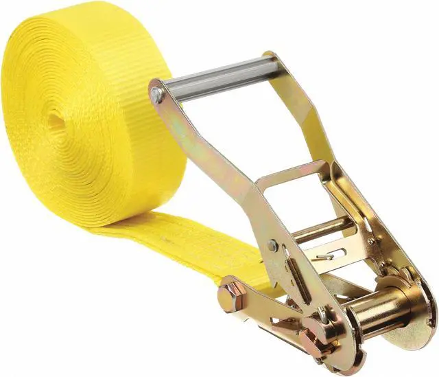 Tie Down Strap, Working Load Limit 3, 300 lb, Color Yellow, End Type Endless, Tensile Strength 10, 000 lb/in, Tie Down Material Polyester, Overall Width 2 in, Reinforcement Properties General Purpose, Fixed End Length Not Applicable, Overall Length 27 ft, Standards CVSA, FMCSA, US DOT, Adjustment Type Ratchet, Manufacturers Warranty Length Not Applicable, End Material Not Applicable, Product Type Tie Down Strap. This item has been restricted from sale in the following state (s): []