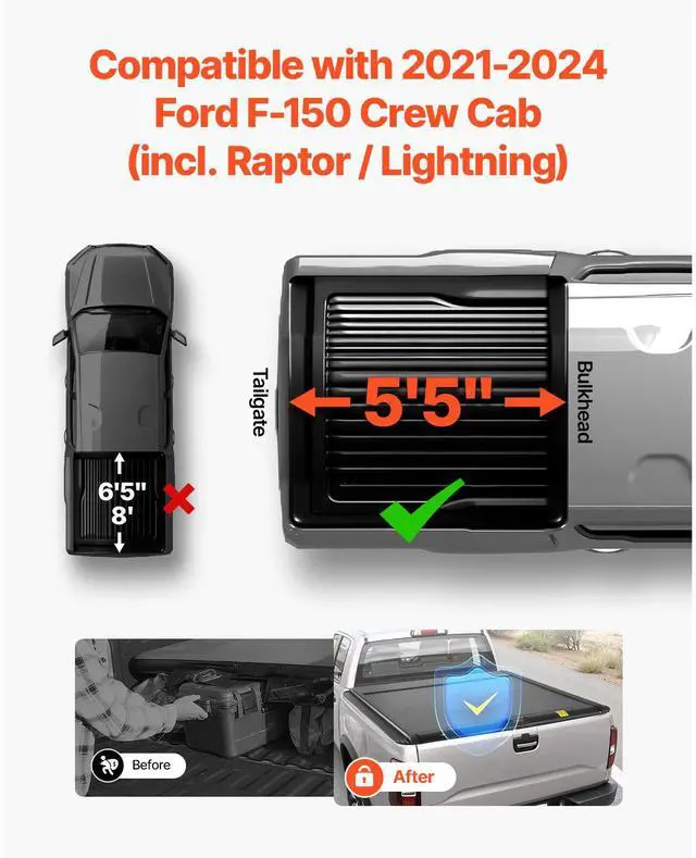Compatible Truck Bed Length: 5'5" / 1676 mm