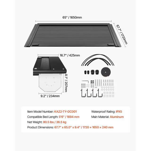 Compatible Truck Bed Length: 5'6" / 1694 mm