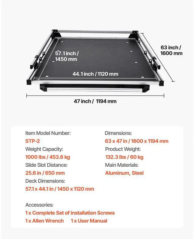 Deck Dimensions: 57.1 x 44.1 in / 1450 x 1120 mm