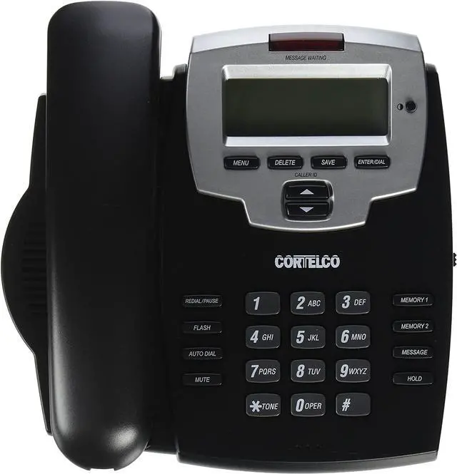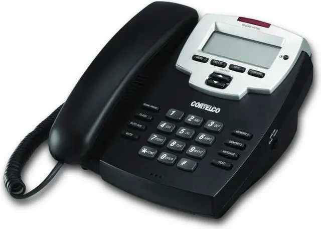 Cortelco 9120 Brand New Includes One Year WarrantyThe Cortelco 9120 corded phone features a 3 line, blue, backlit display that clearly displays call information. This model features 10 speed dial locations, so you can easily store frequently dialled numbers. Other features includes 2.5 mm headset jack, hearing aid compatibility, voice message waiting indicator/FSK and handset volume control.