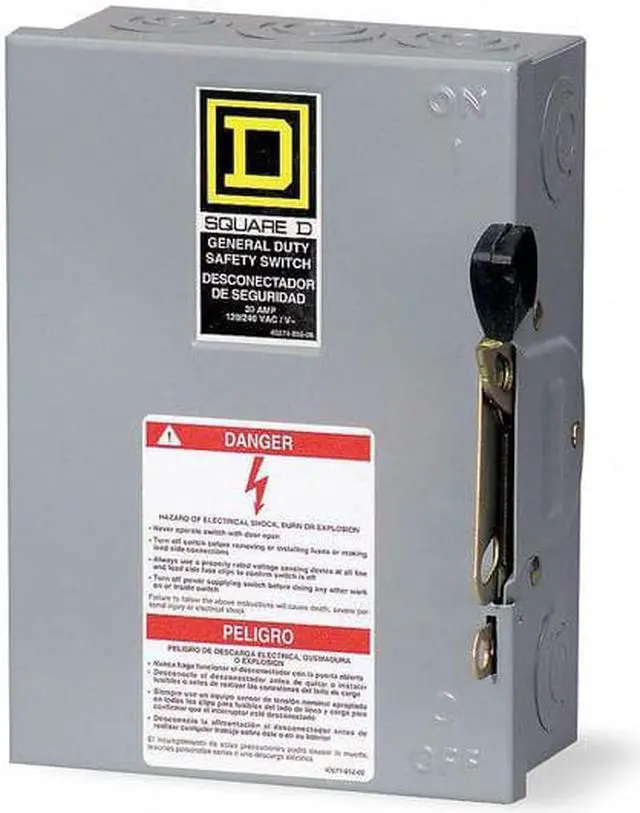 The SQUARE D - DU323RB is a Safety Disconnect Switch, an essential industrial electrical device designed to interrupt the flow of electricity for equipment maintenance and emergency situations. It falls under the broader category of Electrical Supplies and is used by industry professionals to swiftly disconnect power systems, mitigating the risk of electrical accidents during routine operations or unexpected events.