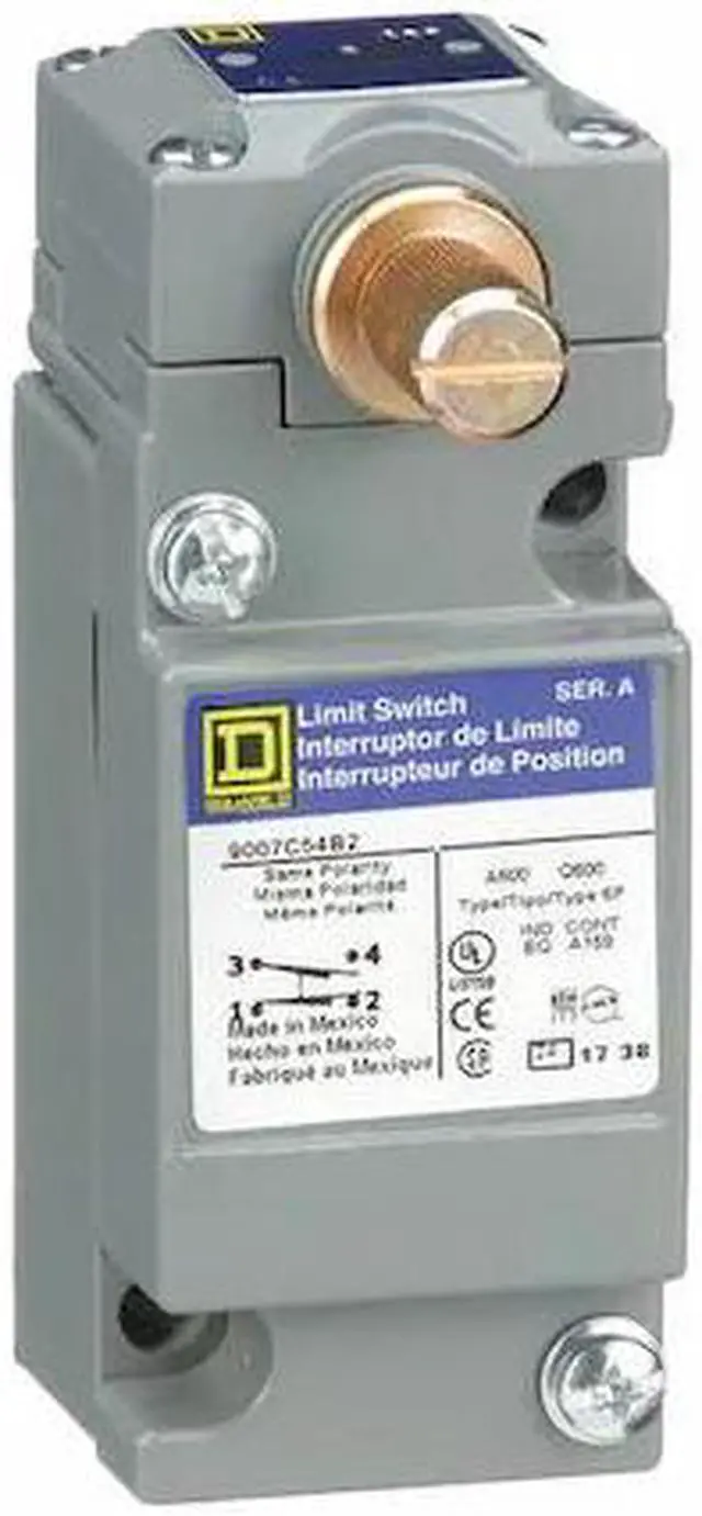 Plug-In Limit Switch, Actuator Style - Limit Switch No Lever, Rotary, Actuator Location - Limit Switch Side, AC Contact Rating - Limit Switch 10A @ 600V, DC Contact Rating - Limit Switch 10A @ 600V, Contact Form- Switches 1NC/1NO, Body Height - Limit Switch 2.5 in, Body Width - Limit Switch 0.83 in, Body Depth - Limit Switch 1.14 in, Boot Sealed Actuator - Limit Switch No, Body Style - Limit Switch Miniature, NEMA Rating 1, 12, 13, 2, 4, 6, 6P, Mounting - Limit Switch Surface.