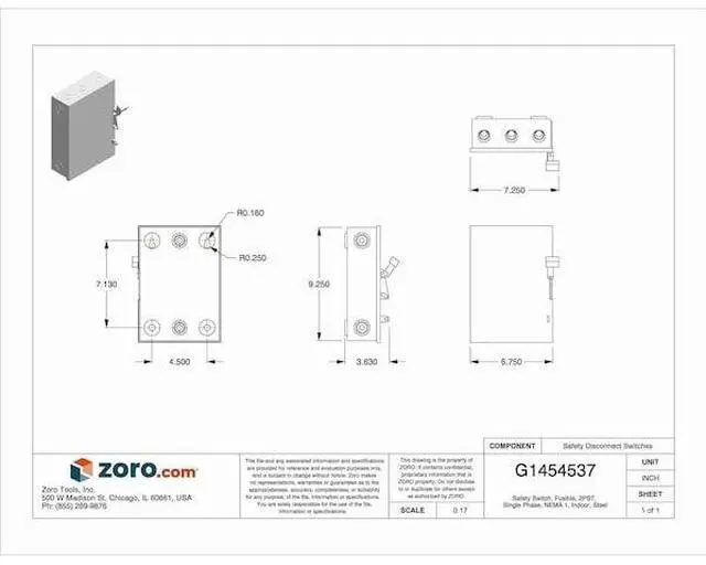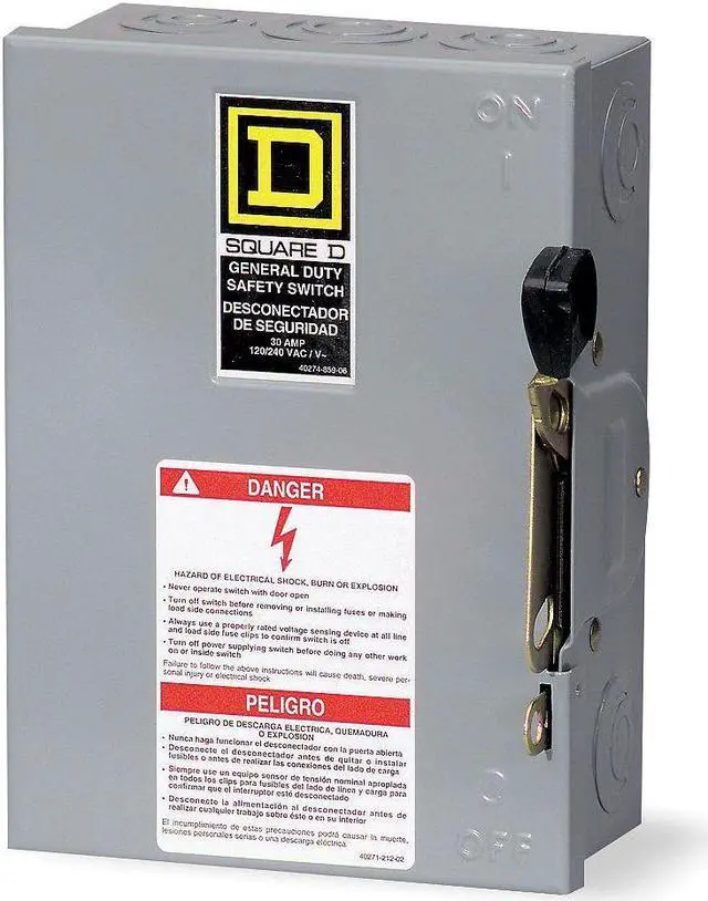 Safety Switch, Fusible, For Use With Plug Style Fuse, General Duty, 30 A Amps AC, Voltage 240V AC, 1 Phase, 3 hp @ 240V AC HP, 1 NEMA Enclosure Type, 20 IP Rating, Metallic / Non-Metallic Metallic, Material of Construction Steel, Number of Wires 3, Number of Poles 2, Contact Form 2PST, Height 9.2 in, Width 7.2 in, Depth 3.6 in, Standards UL Listed. This item has been restricted from sale in the following state (s): []