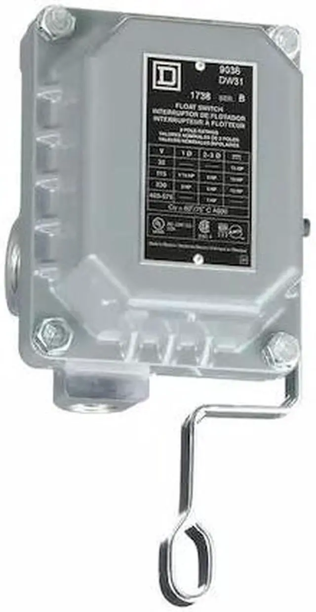 Open Liquid Level Switch, 10 A Amps, Contact Form DPST-2NC, VA Rating 475V AC, Float Travel 1 1/4 in, NEMA Rating 4, Operating Temp. Range -22 Degrees to 220 Degrees F, Switch Function Close On Rise, Overall Length 7.1 in, Float Material Stainless Steel, Float Length 7 in, Float Dia. 7 in, Height 4.27 in, Width 2.53 in, Max. Current 10 A, Max. Voltage 575 V, HP @ 1 Phase - 120V 2 hp, HP @ 1 Phase - 240V 3 hp, HP @ 3 Phase - 240V 5 hp, Open Tank Mounting, Body Material Aluminum.