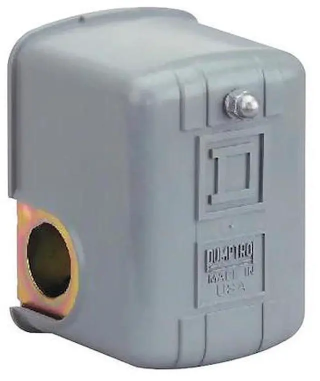 Air Compressor Switch, Air Compressor, Manual Switch Action None, (1) Port, 1/4 in FNPS, Pressure Switch Factory On/Off Setting 120/150 psi, No Pressure Switch Unloader, Pressure Switch Differential 30 psi, Pressure Switch Range 40 to 150 psi, Pressure Switch Electrical Contact Form DPST, Pressure Switch Action Standard, NEMA Rating 1, Series 9013FH, HP @ 1 Phase - 120V 1 1/2 hp, HP @ 1 Phase - 240V 2 hp, HP @ 3 Phase - 240V 3 hp, HP @ 3 Phase - 480V 1 hp.