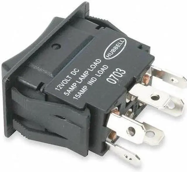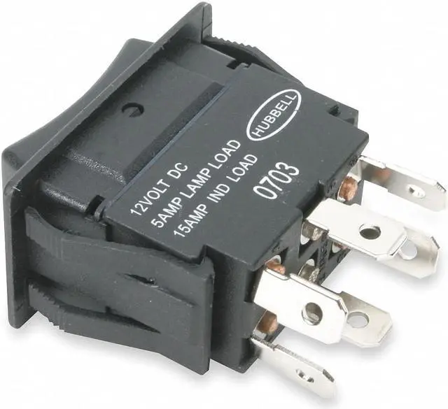 Marine Rocker Switch, Contact Form DPDT, Number of Connections 6, Switch Function Momentary On/Off/Momentary On, Terminals 0.250 in Quick Connect Tab, Mounting Hole 0.875 in x 1.500 in, AC Contact Rating Not Applicable, DC Contact Rating 5 A @ 12 V, Body Color Black, Switch Color Black, Operating Temp. Range 32 Degrees to 100 Degrees F, IP Rating Not Applicable, Special Features Dual Fuel Tanks, Trim Tabs, Use with Horn, Winches, Recommended Use Dual Fuel Tanks, Trim Tabs, Winches. This item has been restricted from sale in the following state (s): []
