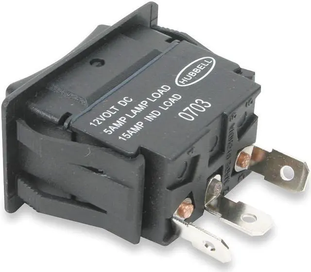 Marine Rocker Switch, Contact Form SPDT, Number of Connections 3, Switch Function Momentary On/Off/Momentary On, Terminals 0.250 in Quick Connect Tab, Mounting Hole 0.875 in x 1.500 in, AC Contact Rating Not Applicable, DC Contact Rating 5 A @ 12 V, Body Color Black, Switch Color Black, Operating Temp. Range 32 Degrees to 100 Degrees F, IP Rating Not Applicable, Special Features Trim Tabs, Use with Horn, Recommended Use Trim Tabs. This item has been restricted from sale in the following state (s): []