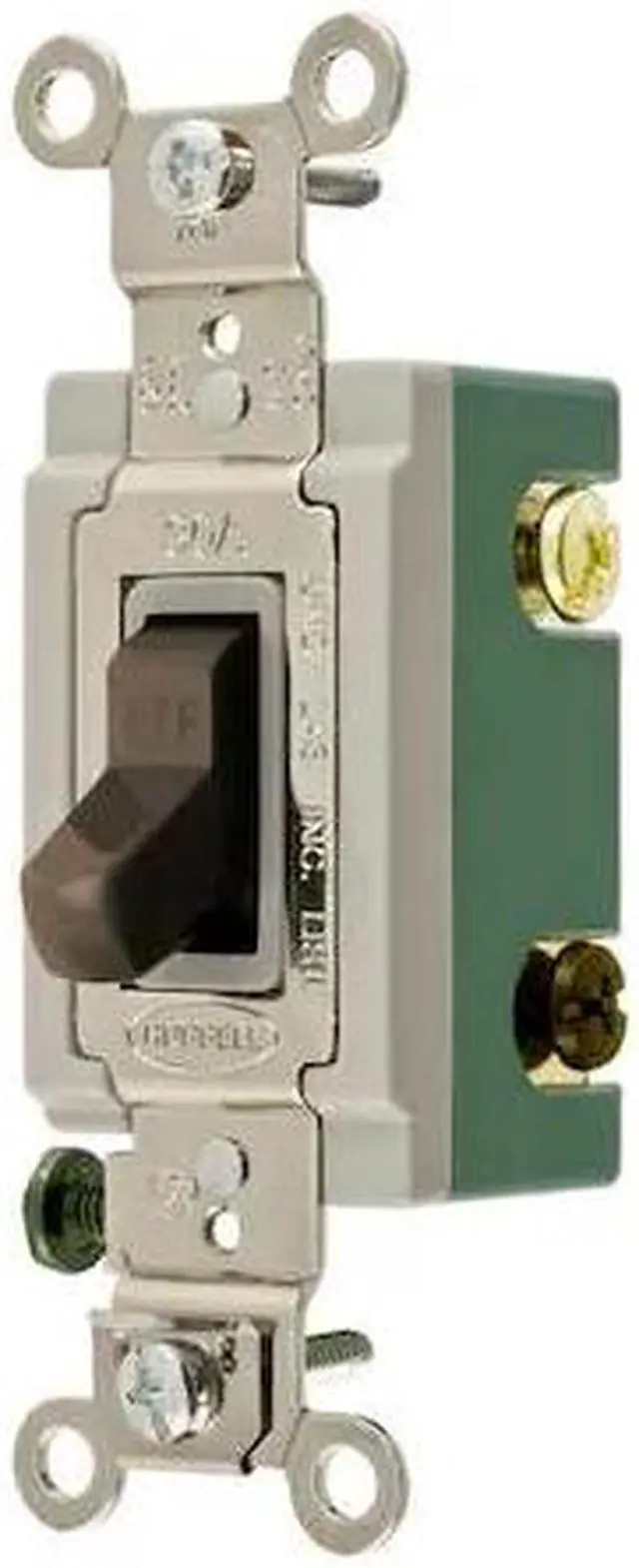 Wall Switch, Color Brown, Current Rating 30 A, Switch Function Maintained, Switch Type 3-Way, Voltage Rating 120/277V AC, Wiring Method Back, Side, Horsepower Rating 2 hp, Maximum Wire Size 10 AWG, Minimum Wire Size 14 AWG, Number of Switches 1, Resistance Properties Shatter and Crack Resistant, Impact Resistant, Standards UL Listed, Switch Style Toggle, Wire Connection Type Screw Terminals, Features Large Brass Binding Head Screws with Deep Slots, Strip Gauge for Accurate Wiring. This item has been restricted from sale in the following state (s): []