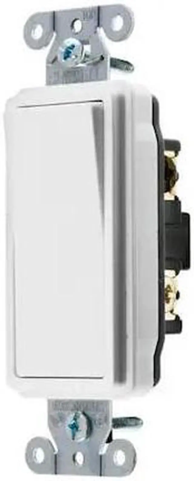 Wall Switch, Color White, Current Rating 15 A, Switch Function Maintained, Switch Type 3-Way, Voltage Rating 120/277V AC, Wiring Method Back, Side, Horsepower Rating 1/2 hp, Maximum Wire Size 10 AWG, Minimum Wire Size 14 AWG, Number of Switches 1, Resistance Properties Impact Resistant, Standards UL Listed, Switch Style Rocker, Wire Connection Type Screw Terminals, Features Automatic Self-Grounding Staple, Grounding Grounded, Housing Material Thermoplastic, Market Commercial. This item has been restricted from sale in the following state (s): []