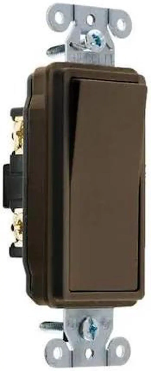 Wall Switch, Color Brown, Current Rating 15 A, Switch Function Maintained, Switch Type Single Pole, Voltage Rating 120/277V AC, Wiring Method Back, Side, Horsepower Rating 1/2 hp, Maximum Wire Size 10 AWG, Minimum Wire Size 14 AWG, Number of Switches 1, Resistance Properties Impact Resistant, Standards UL Listed, Switch Style Rocker, Wire Connection Type Screw Terminals, Features Automatic Self-Grounding Staple, Grounding Grounded, Housing Material Thermoplastic, Market Commercial. This item has been restricted from sale in the following state (s): []