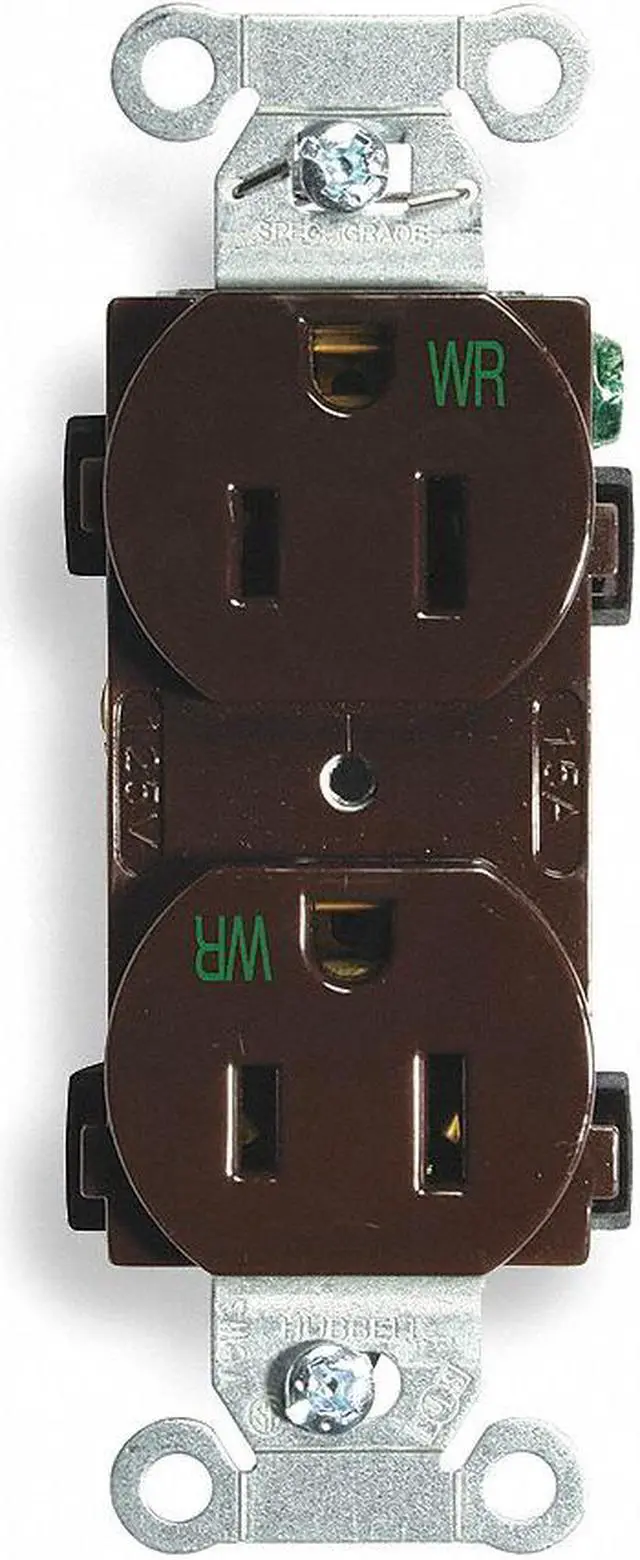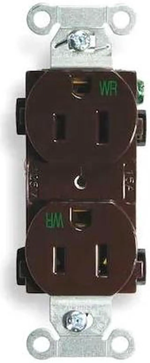 Receptacle, Connection Orientation Straight, Cover Type No Cover, Current Rating 15 A, GFCI No, Grounding Grounded, Housing Color Brown, Housing Material Nylon, Mount Type Flush, NEMA Enclosure Rating 1, NEMA Receptacle Configuration 5-15R, Number of Gangs 1, Number of Poles 2, Number of Wires 3, Phase Single, Polarized Yes, Receptacle Type Duplex, Resistance Properties Weather Resistant, Standards CSA Certified C 22.2, Federal Specification W-C-596, NEMA WD-6, UL 498, Voltage Rating 125V AC. This item has been restricted from sale in the following state (s): []