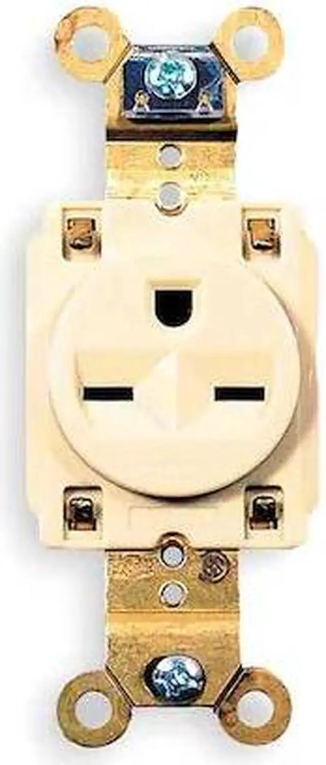 Receptacle, Connection Orientation Straight, Cover Type No Cover, Current Rating 15 A, GFCI No, Grounding Grounded, Housing Color Ivory, Housing Material Nylon, Mount Type Flush, NEMA Enclosure Rating 1, NEMA Receptacle Configuration 6-15R, Number of Gangs 1, Number of Poles 2, Number of Wires 3, Phase Single, Polarized Yes, Receptacle Type Single, Standards CSA Certified C 22.2 No. 42 File 285, Federal Specification W-C-596G, NEMA WD-6, UL 498 File E2186, Voltage Rating 250V AC. This item has been restricted from sale in the following state (s): []