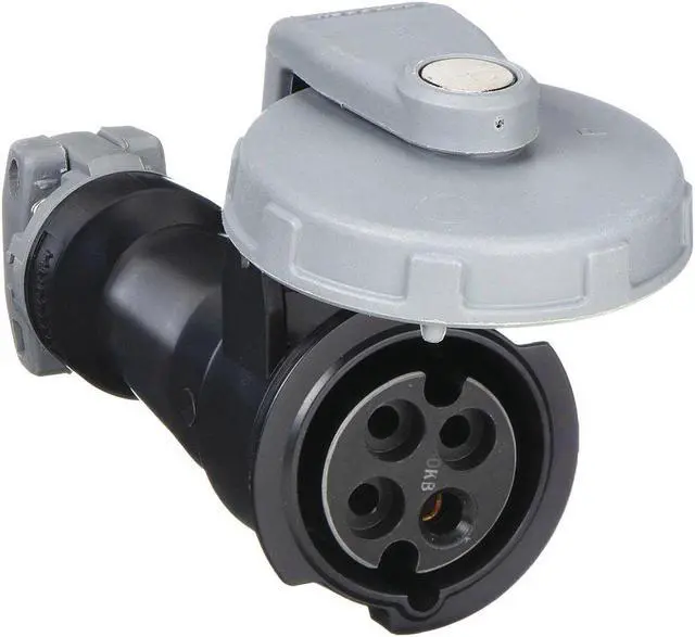 Watertight Pin and Sleeve Connector, Current Rating 20 A, Grounding Style IEC, Horsepower Rating 10 hp, Housing Color Black, IP Rating IP68, IP69K, Number of Poles 3, Number of Wires 4, Phase Three, Resistance Properties Corrosion Resistant, Impact Resistant, Moisture Resistant, Watertight, Switch Rated No, Voltage Rating 600V AC, Cap Type Spring-Loaded Cap, Connection Orientation Straight, Face Diameter 3.31 in, For Maximum Cable Diameter 0.83 in, For Minimum Cable Diameter 0.33 in. This item has been restricted from sale in the following state (s): []