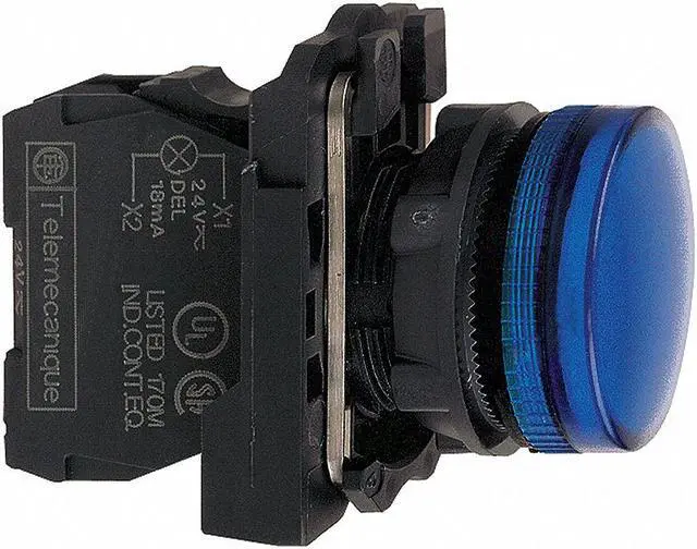 Pilot Light, Voltage 110 to 120V AC, Color Blue, Lamp Type LED, Shape Round, Terminal Connection Screw Clamp, Lens Material Plastic, 22 mm, Lamp Module Type Full Voltage, Basic Material Plastic, Lens Type Smooth, Body Material Plastic, NEMA Rating 13, 4, 4X, IP Rating IP66, IP67, IP69, IP69K, Standards CSA, REACH, RoHS, UL Listed, WEEE. This item has been restricted from sale in the following state (s): []