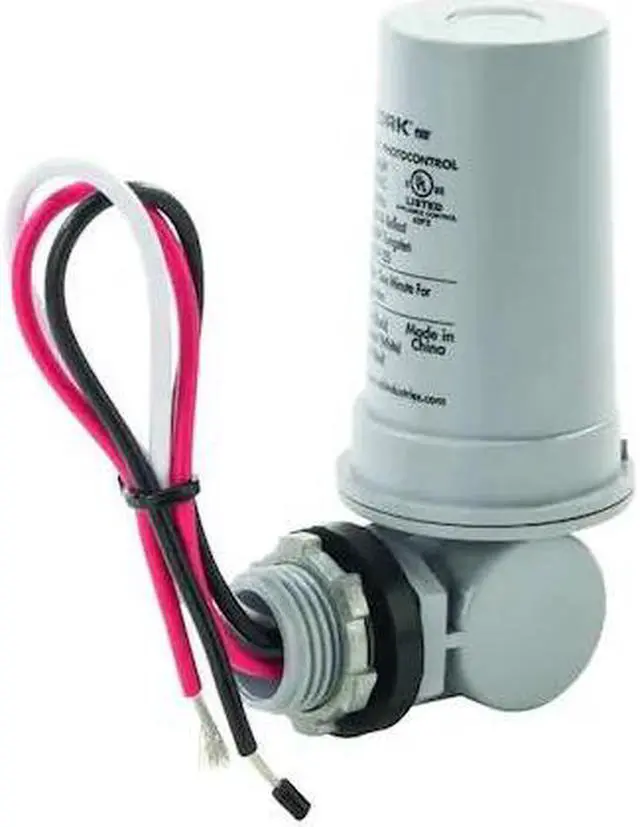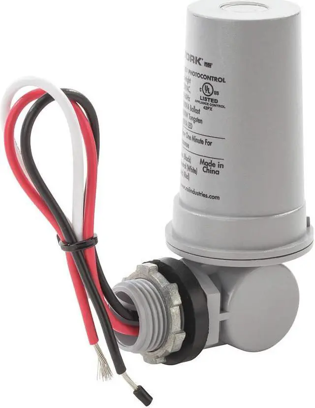 Photocontrol, Mounting 1/2 in Conduit, 180 Degrees Swivel, Voltage 208 to 277V AC, Max. Wattage 4, 620, Max. Incandescent Amps 16.7 A, Max. Ballast Amps 10 A, 1.0 to 5.0 Foot Candles On, 3 to 15 Foot Candles Off, Color Gray, Temp. Range -40 Degrees to 140 Degrees F, Length 4 7/8 in, Width 1 5/8 in, Depth 1 5/8 in, Enclosure Type Raintight, Contact Form SPST, Housing Material Polycarbonate, Setting Dusk to Dawn, Standards UL 773A, Includes Gasket, Lock Nut.