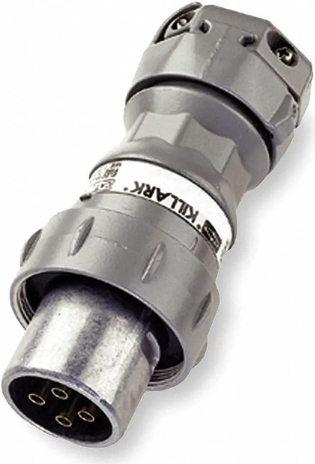 The HUBBELL Pin & Sleeve Plug, 30A, 4P, 4W is an electrical connector rated for industrial environments. This plug features an octagonal body style for a secure grip during connection and disconnection. It is rated for up to 30 amps and supports both 600V AC and 250V DC applications with four poles and four wires. The unit is constructed from copper-free aluminum with a baked powder epoxy/polyester finish, with a finish intended for use in wet, cold, hazardous, corrosive, or marine locations.