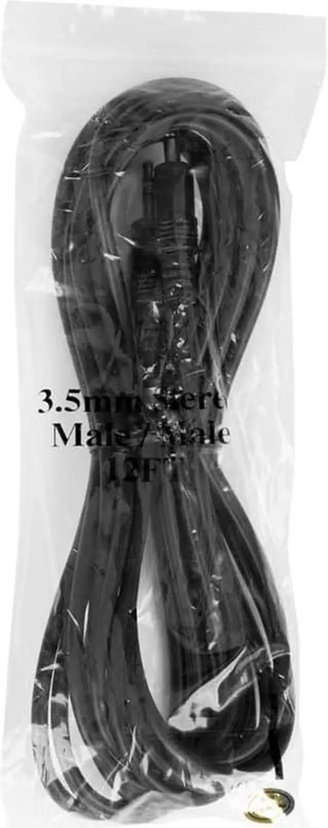 This stereo audio cable features 3.5 mm (1/8") stereo TRS connectors, which are often standard for headphone jacks on portable mp3 players and mobile phones. It features a male 3.5 mm stereo (TRS) plug on each end, with molded connector housings and strain-relief boots. Use to connect a stereo audio output, such as an mp3 player or phone, to a stereo audio input, such as the auxiliary input on a car stereo system. Audio Cable, 3.5 mm, M/M, 12 Ft