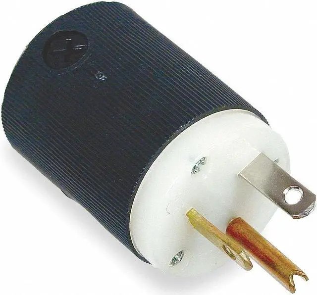Insulgrip plug has a tough, ribbed nylon housing that withstands heavy abuse and holds securely without slippage. Powerful Vari-size cord grip adjusts to a wide range of cord sizes, 10/3 SO to 18/3 SJ. "Picture Window" wiring gives visual assurance that conductors are inserted and terminated correctly. Plug, 5-20P, 20A, 125V