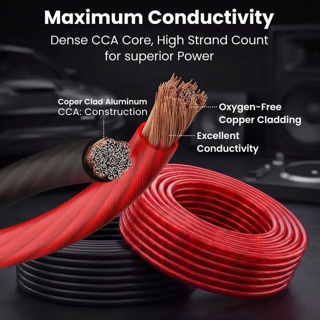 Copper-Clad Aluminum CCA provides a balance of conductivity and affordability. A copper layer bonded to an aluminum core delivers copper-like performance with lightweight flexibility. 8 AWG cable carries high current while being 40% lighter than pure copper, making installation easier.