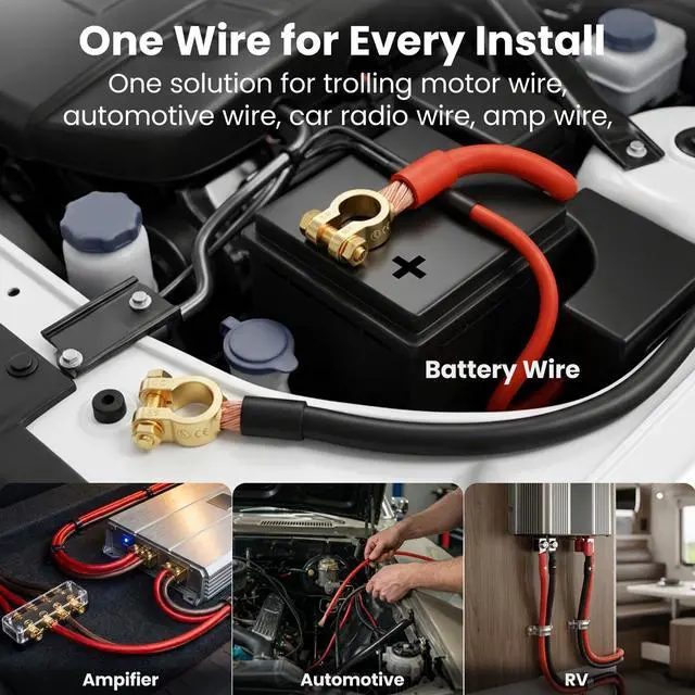 Car Audio Perfect for subwoofers needing clean power and deep bass. RV/Marine Connect battery banks to inverters and chargers in mobile setups. Off-Grid Solar For 12V/24V systems, linking panels, controllers, and batteries. Heavy Equipment Reliable for tractors, forklifts, and construction circuits.