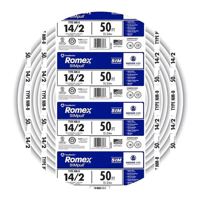 Romex Type NM-B Copper Building Wire is commonly applied in residential building wiring as a branch circuit for switches and outlets