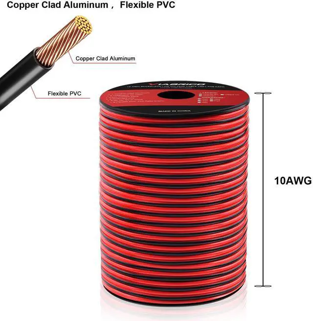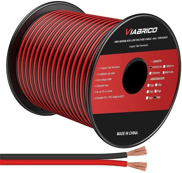 VIABRICO Low Voltage Wire: 10/2 gauge black and red speaker wire is ideal for low voltage applications such as 12V/24V DC circuit connections, home or car speakers, home appliances, single color LED light strip, lamps, automotive, boat ect.