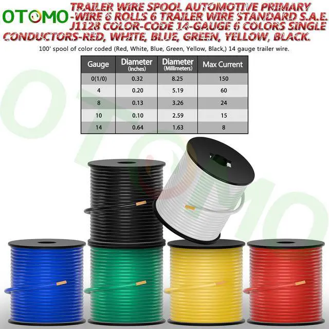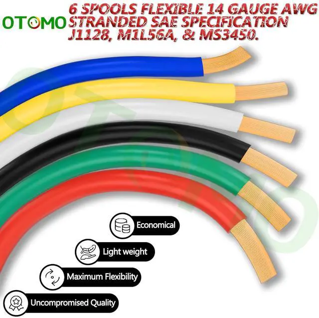 Color-Coded & Sufficient6-Color Single Conductor Spool is made of White/Black/Yellow/Green/Blue/Red and environmentally-friendly PVC jacket, 100FT each, totally 600FT with 14 Gauge wires, meeting various wiring needs.