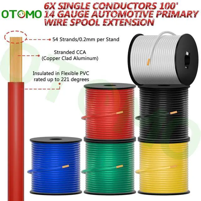Reliable CCA MaterialMade of 14AWG high-quality Copper-Clad Aluminum (CCA), these 6 rolls of 100FT automotive primary wires can handle up to 120W applications, ensuring stable performance.