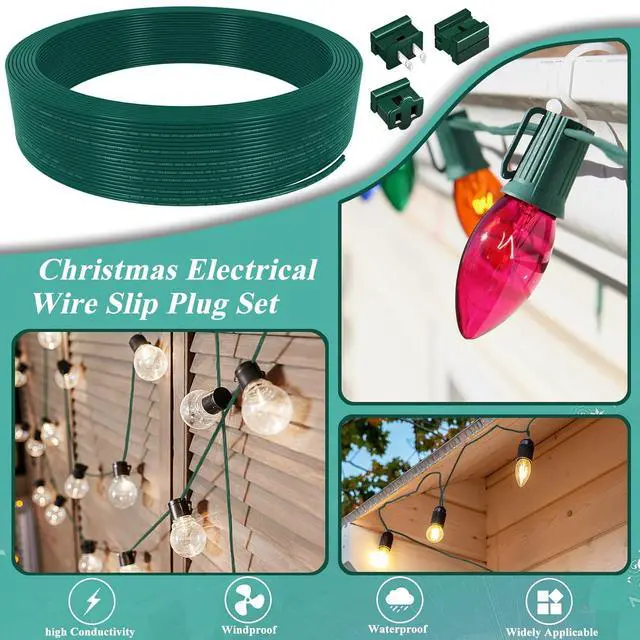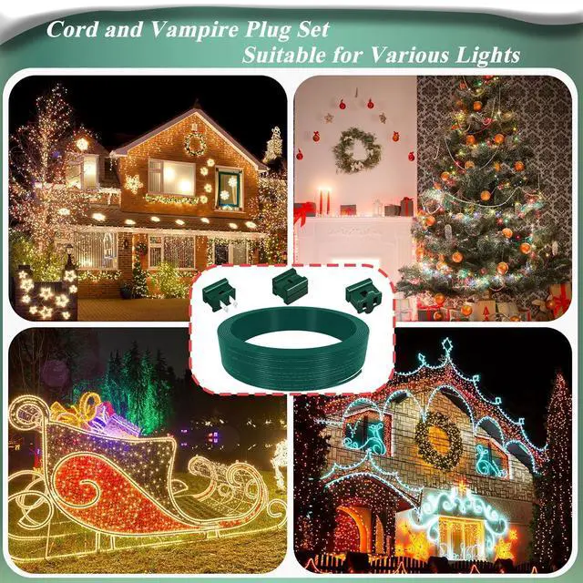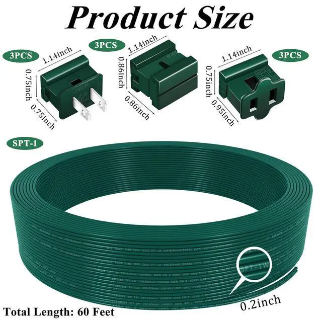 : You will receive 60ft of spt-1 18/2 electrical wire, 3 pcs spt-1 male and 3 pcs spt-1 female plugs, 3 pcs wire connectors, enough quantities for you to use on Christmas or in daily life, this thoughtful Christmas light wire set allows for a convenient one-stop use, also you can share the vampire plugs and wire with others.