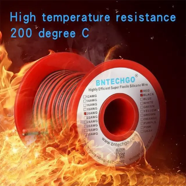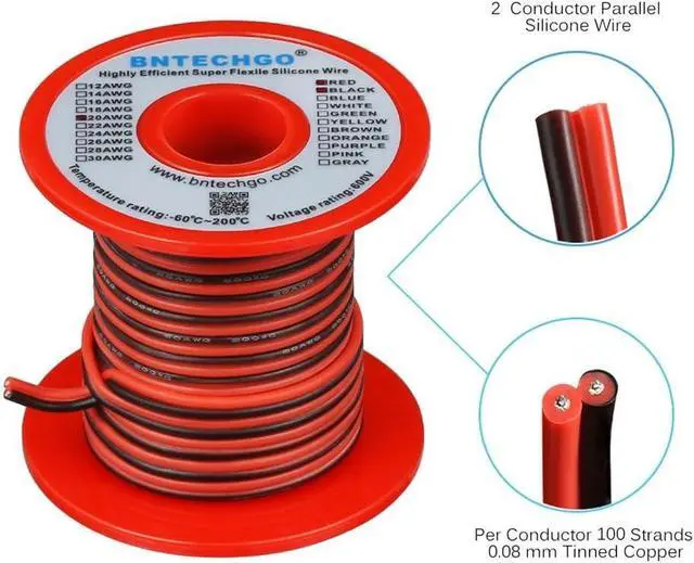 BNTECHGO 20 AWG red black 2 conductor parallel silicone wire, ultra flexible soft, easily separated, easy to use.